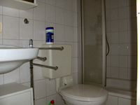 Ein kleines Bad bietet Ihnen in unserer Unterkunft ein WC, eine Dusche.